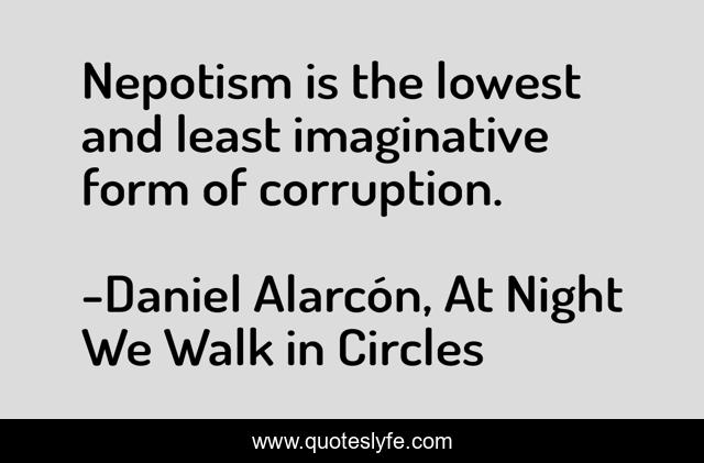 This page presents the quote "Nepotism is the lowest and least imaginative form of corruption.". Author of this quote is Daniel Alarcón, At Night We Walk in Circles. This quote is about nepotism, corruption,.