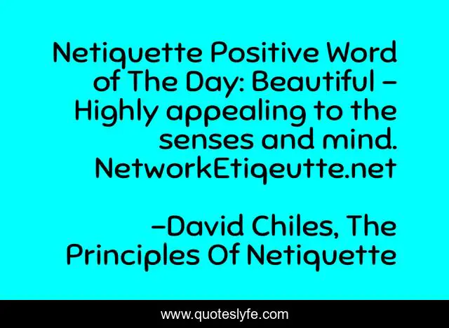 "David Chiles, The Principles Of Netiquette Quotes." Quoteslyfe.com, 2025. Fri. 05 Dec. 2025. <https://www.quoteslyfe.com/quote/Netiquette-Positive-Word-of-The-Day-Beautiful-178821>.