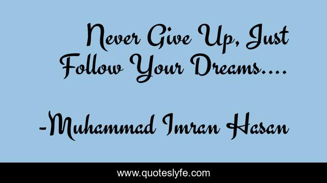 "Muhammad Imran Hasan Quotes." Quoteslyfe.com, 2025. Mon. 08 Dec. 2025. <https://www.quoteslyfe.com/quote/Never-Give-Up-Just-Follow-Your-Dreams-95468>.