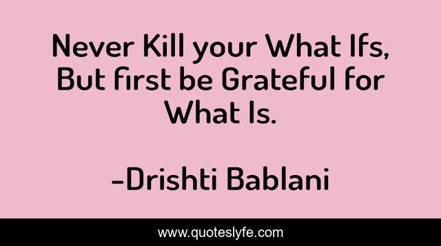 "Drishti Bablani Quotes." Quoteslyfe.com, 2025. Fri. 05 Dec. 2025. <https://www.quoteslyfe.com/quote/Never-Kill-your-What-Ifs-But-first-131072>.