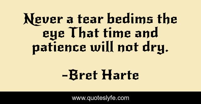This page presents the quote "Never a tear bedims the eye That time and patience will not dry.". Author of this quote is Bret Harte. .