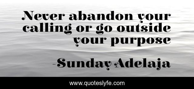 This page presents the quote "Never abandon your calling or go outside your purpose". Author of this quote is Sunday Adelaja. This quote is about kingdom, life, love, destiny, service, people, money, god, work,.