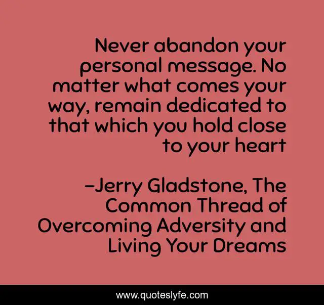 "Jerry Gladstone, The Common Thread of Overcoming Adversity and Living Your Dreams Quotes." Quoteslyfe.com, 2025. Sat. 06 Dec. 2025. <https://www.quoteslyfe.com/quote/Never-abandon-your-personal-message-No-matter-14688>.