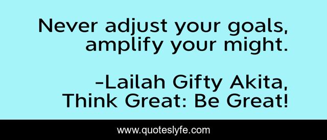 "Lailah Gifty Akita, Think Great: Be Great! Quotes." Quoteslyfe.com, 2025. Sun. 07 Dec. 2025. <https://www.quoteslyfe.com/quote/Never-adjust-your-goals-amplify-your-might-91722>.