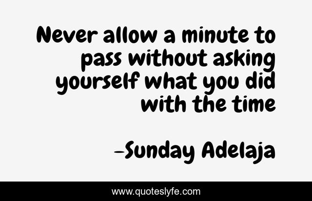 This page presents the quote "Never allow a minute to pass without asking yourself what you did with the time". Author of this quote is Sunday Adelaja. This quote is about life, blessing, finance, money, work, wisdom, time-well-spent, job, joblessness,.