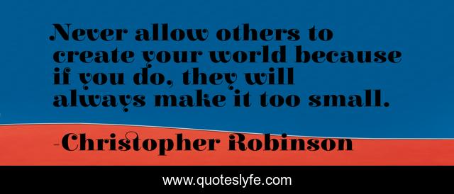 This page presents the quote "Never allow others to create your world because if you do, they will always make it too small.". Author of this quote is Christopher Robinson. This quote is about enthusiasm, inspirational,.