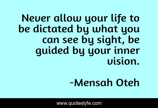 Never allow your life to be dictated by what you can see by sight, be guided by your inner vision.