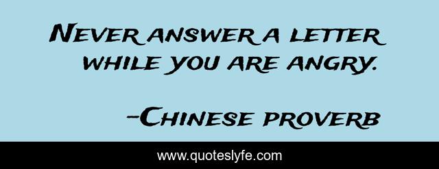 This page presents the quote "Never answer a letter while you are angry.". Author of this quote is Chinese proverb. .