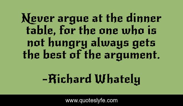 This page presents the quote "Never argue at the dinner table, for the one who is not hungry always gets the best of the argument.". Author of this quote is Richard Whately. This quote is about dinner, argument, hungry,.