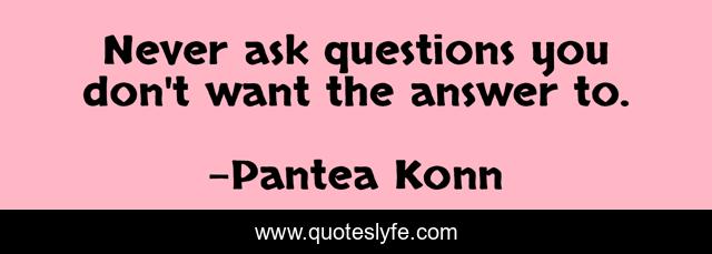 "Pantea Konn Quotes." Quoteslyfe.com, 2025. Fri. 05 Dec. 2025. <https://www.quoteslyfe.com/quote/Never-ask-questions-you-don-t-want-146609>.