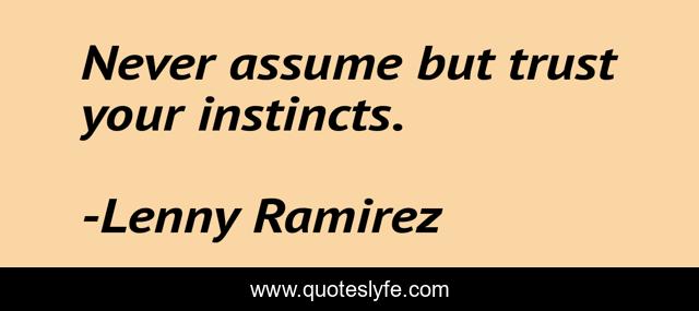 "Lenny Ramirez Quotes." Quoteslyfe.com, 2025. Sat. 06 Dec. 2025. <https://www.quoteslyfe.com/quote/Never-assume-but-trust-your-instincts-119433>.