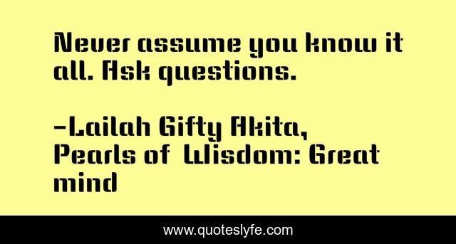 "Lailah Gifty Akita, Pearls of Wisdom: Great mind Quotes." Quoteslyfe.com, 2025. Fri. 05 Dec. 2025. <https://www.quoteslyfe.com/quote/Never-assume-you-know-it-all-Ask-98671>.