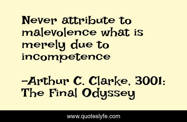 "Arthur C. Clarke, 3001: The Final Odyssey Quotes." Quoteslyfe.com, 2025. Sat. 06 Dec. 2025. <https://www.quoteslyfe.com/quote/Never-attribute-to-malevolence-what-is-merely-258997>.