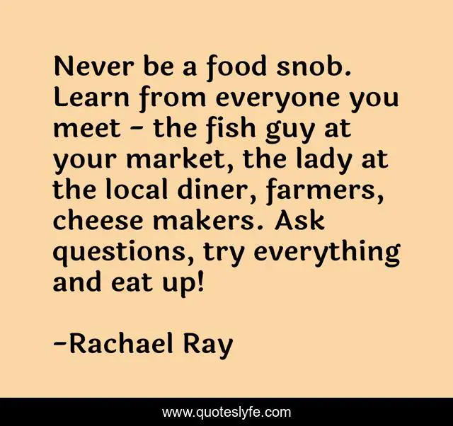 "Rachael Ray Quotes." Quoteslyfe.com, 2025. Mon. 08 Dec. 2025. <https://www.quoteslyfe.com/quote/Never-be-a-food-snob-Learn-from-300688>.