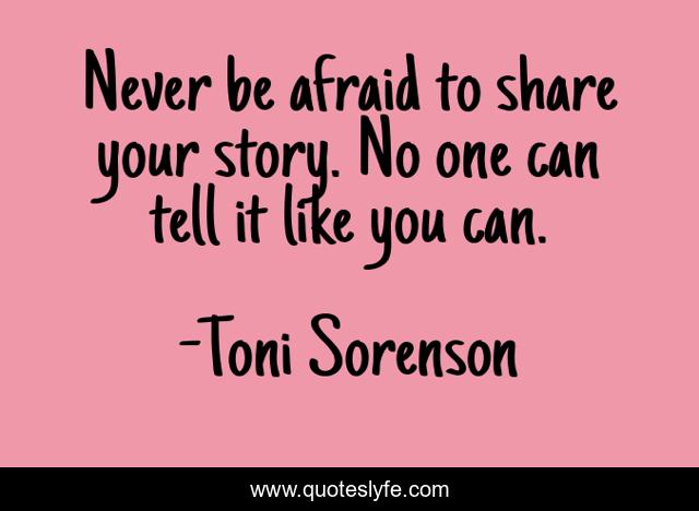 "Toni Sorenson Quotes." Quoteslyfe.com, 2025. Fri. 05 Dec. 2025. <https://www.quoteslyfe.com/quote/Never-be-afraid-to-share-your-story-186186>.