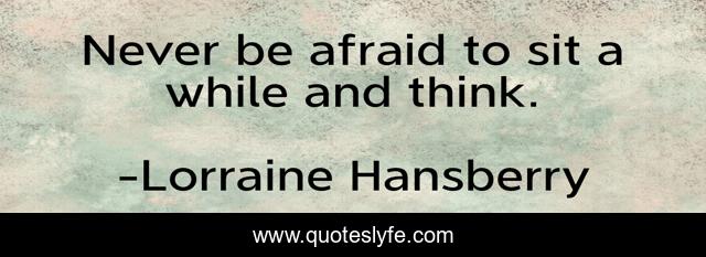This page presents the quote "Never be afraid to sit a while and think.". Author of this quote is Lorraine Hansberry. This quote is about afraid, think,.