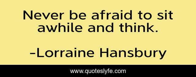 This page presents the quote "Never be afraid to sit awhile and think.". Author of this quote is Lorraine Hansbury. .