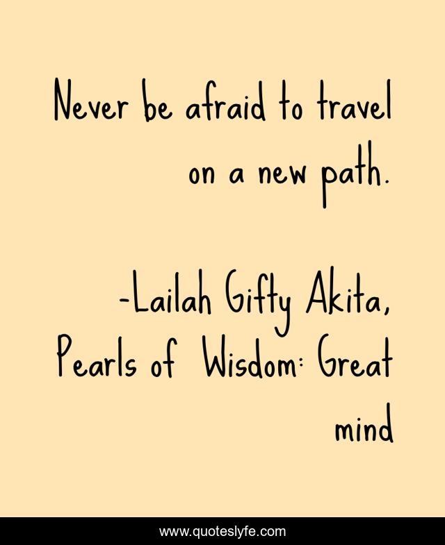 "Lailah Gifty Akita, Pearls of Wisdom: Great mind Quotes." Quoteslyfe.com, 2025. Mon. 08 Dec. 2025. <https://www.quoteslyfe.com/quote/Never-be-afraid-to-travel-on-a-121272>.