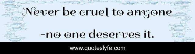 "no one deserves it. Quotes." Quoteslyfe.com, 2025. Mon. 08 Dec. 2025. <https://www.quoteslyfe.com/quote/Never-be-cruel-to-anyone-75259>.