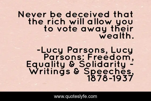 "Lucy Parsons, Lucy Parsons: Freedom, Equality & Solidarity - Writings & Speeches, 1878-1937 Quotes." Quoteslyfe.com, 2025. Fri. 05 Dec. 2025. <https://www.quoteslyfe.com/quote/Never-be-deceived-that-the-rich-will-138309>.