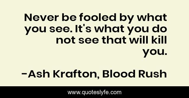 This page presents the quote "Never be fooled by what you see. It's what you do not see that will kill you.". Author of this quote is Ash Krafton, Blood Rush. This quote is about urban-fantasy, vampire,.