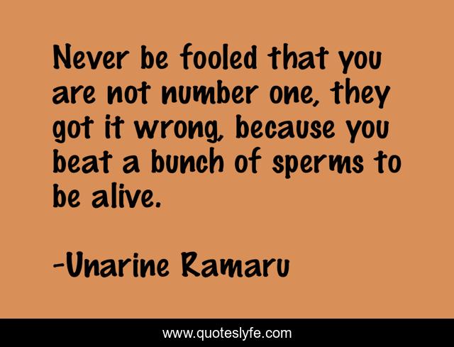 This page presents the quote "Never be fooled that you are not number one, they got it wrong, because you beat a bunch of sperms to be alive.". Author of this quote is Unarine Ramaru. This quote is about motivation, success, number-one, winners-mentality, leadership, wrong-and-right, positive-thinking,.