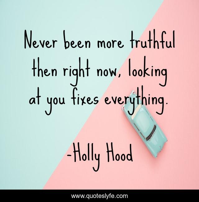This page presents the quote "Never been more truthful then right now, looking at you fixes everything.". Author of this quote is Holly Hood. This quote is about adoration, love, life, romance, happiness, affection,.