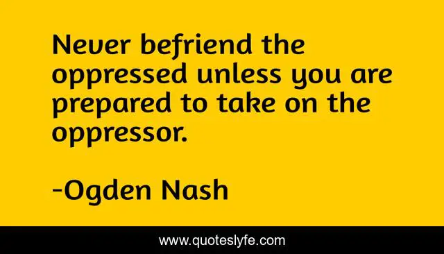 This page presents the quote "Never befriend the oppressed unless you are prepared to take on the oppressor.". Author of this quote is Ogden Nash. .