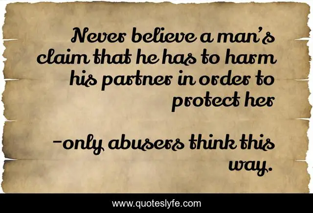 "only abusers think this way. Quotes." Quoteslyfe.com, 2025. Tue. 09 Dec. 2025. <https://www.quoteslyfe.com/quote/Never-believe-a-man-s-claim-that-210255>.