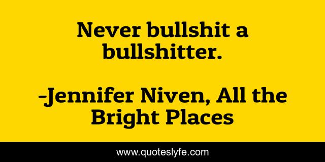 "Jennifer Niven, All the Bright Places Quotes." Quoteslyfe.com, 2025. Tue. 09 Dec. 2025. <https://www.quoteslyfe.com/quote/Never-bullshit-a-bullshitter-114086>.