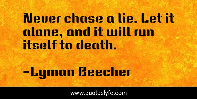 This page presents the quote "Never chase a lie. Let it alone, and it will run itself to death.". Author of this quote is Lyman Beecher. This quote is about alone, lie, run,.