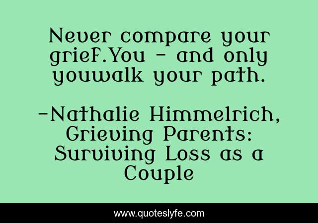 "Nathalie Himmelrich, Grieving Parents: Surviving Loss as a Couple Quotes." Quoteslyfe.com, 2025. Fri. 05 Dec. 2025. <https://www.quoteslyfe.com/quote/Never-compare-your-grief-You-and-only-123591>.