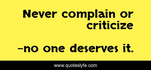 "no one deserves it. Quotes." Quoteslyfe.com, 2025. Sat. 06 Dec. 2025. <https://www.quoteslyfe.com/quote/Never-complain-or-criticize-74586>.