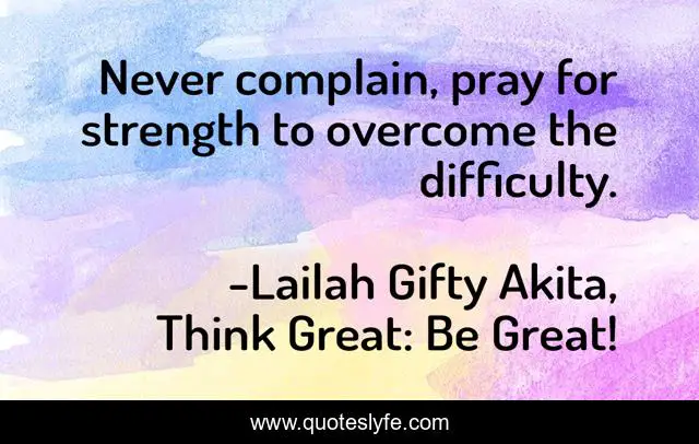 "Lailah Gifty Akita, Think Great: Be Great! Quotes." Quoteslyfe.com, 2025. Mon. 08 Dec. 2025. <https://www.quoteslyfe.com/quote/Never-complain-pray-for-strength-to-overcome-78484>.