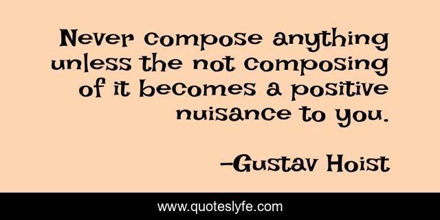 This page presents the quote "Never compose anything unless the not composing of it becomes a positive nuisance to you.". Author of this quote is Gustav Hoist. .