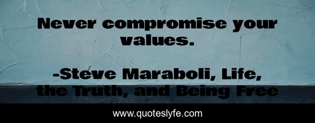 This page presents the quote "Never compromise your values.". Author of this quote is Steve Maraboli, Life, the Truth, and Being Free. This quote is about life, inspirational, values, choice, responsibility, truth, enthusiasm, accountability,.