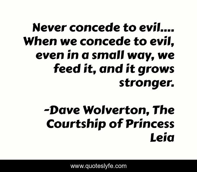 "Dave Wolverton, The Courtship of Princess Leia Quotes." Quoteslyfe.com, 2025. Fri. 05 Dec. 2025. <https://www.quoteslyfe.com/quote/Never-concede-to-evil-When-we-concede-154072>.