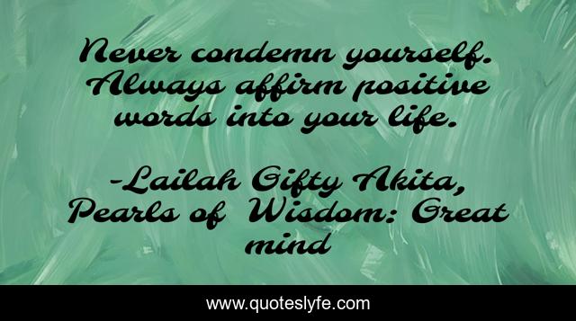 "Lailah Gifty Akita, Pearls of Wisdom: Great mind Quotes." Quoteslyfe.com, 2025. Tue. 09 Dec. 2025. <https://www.quoteslyfe.com/quote/Never-condemn-yourself-Always-affirm-positive-words-142797>.