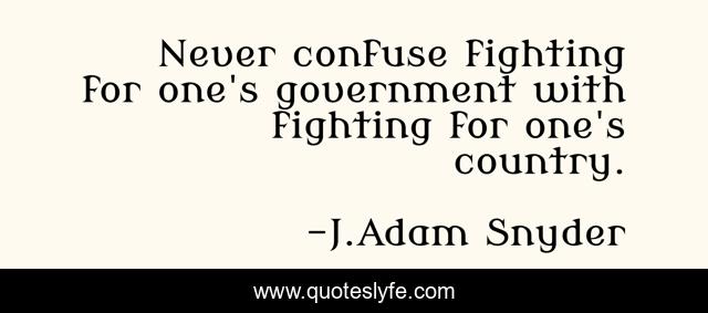 This page presents the quote "Never confuse fighting for one's government with fighting for one's country.". Author of this quote is J.Adam Snyder. This quote is about country, government, patriotism, war, j-adam-snyder,.