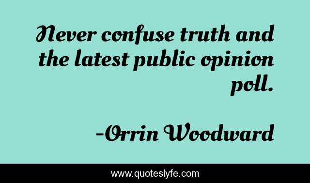 This page presents the quote "Never confuse truth and the latest public opinion poll.". Author of this quote is Orrin Woodward. This quote is about public-opinion, think, truth,.