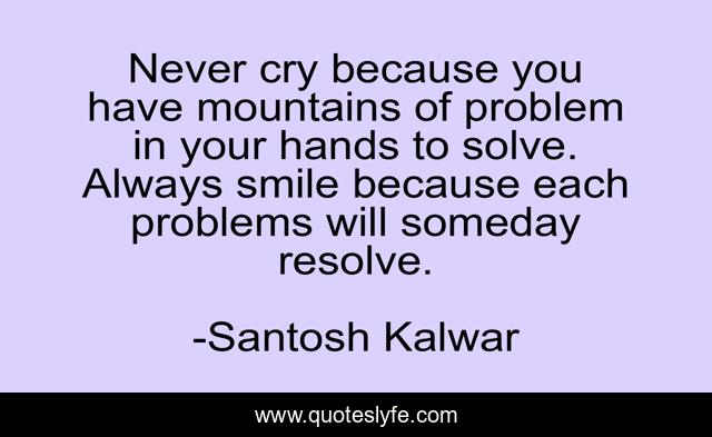 This page presents the quote "Never cry because you have mountains of problem in your hands to solve. Always smile because each problems will someday resolve.". Author of this quote is Santosh Kalwar. This quote is about cry, problems, poetry,.