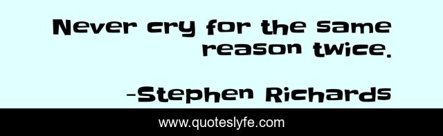 "Stephen Richards Quotes." Quoteslyfe.com, 2025. Mon. 08 Dec. 2025. <https://www.quoteslyfe.com/quote/Never-cry-for-the-same-reason-twice-125696>.