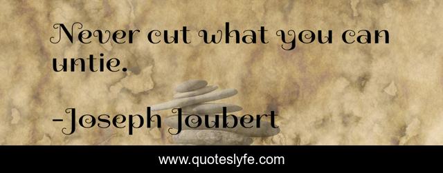 This page presents the quote "Never cut what you can untie.". Author of this quote is Joseph Joubert. .