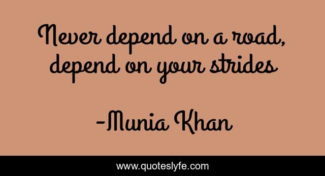 This page presents the quote "Never depend on a road, depend on your strides". Author of this quote is Munia Khan. This quote is about depend, inspirational, depending, dependent, stride, dependence, strides, dependable, way,.