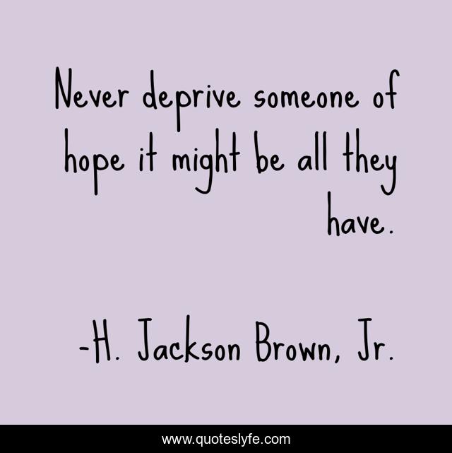 "H. Jackson Brown, Jr. Quotes." Quoteslyfe.com, 2025. Fri. 05 Dec. 2025. <https://www.quoteslyfe.com/quote/Never-deprive-someone-of-hope-it-might-282788>.