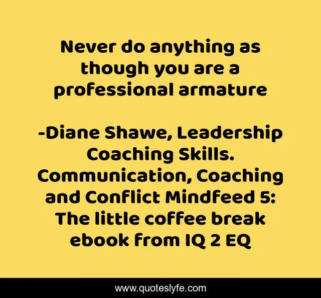 This page presents the quote "Never do anything as though you are a professional armature". Author of this quote is Diane Shawe, Leadership Coaching Skills. Communication, Coaching and Conflict Mindfeed 5: The little coffee break ebook from IQ 2 EQ. .