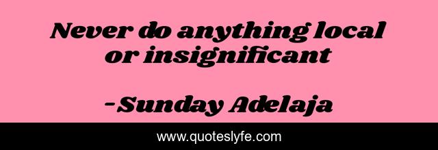 "Sunday Adelaja Quotes." Quoteslyfe.com, 2025. Fri. 05 Dec. 2025. <https://www.quoteslyfe.com/quote/Never-do-anything-local-or-insignificant-46335>.