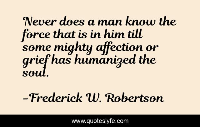 This page presents the quote "Never does a man know the force that is in him till some mighty affection or grief has humanized the soul.". Author of this quote is Frederick W. Robertson. .