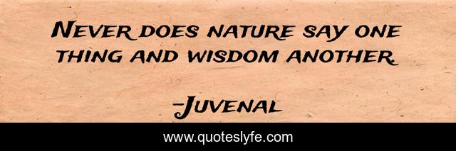 This page presents the quote "Never does nature say one thing and wisdom another.". Author of this quote is Juvenal. .