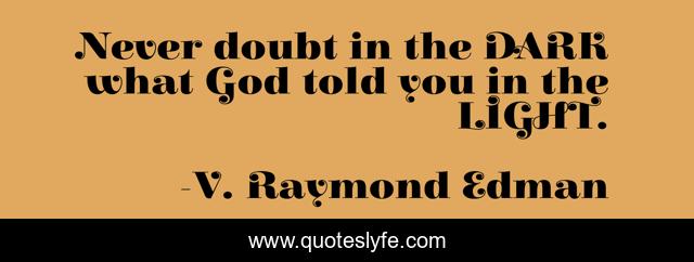 This page presents the quote "Never doubt in the DARK what God told you in the LIGHT.". Author of this quote is V. Raymond Edman. .